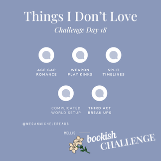 Melli's 30 Day Bookish ChallengeMegsJun 20, 20251 min readUpdated: Mar 6 This challenge took me a little longer than 30 days because life happens. But I am proud of myself for finishing it.